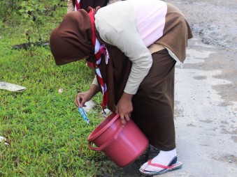 Siswa dibagi menjadi dua kelompok, siswa putra bertugas di daerah kampung Rintis yang berlokasi sekitar 1 km dari lokasi SMP, mereka dengan penuh keceriaan berjalan kaki menuju lokasi sambil masing-masing membawa kantong plastik untuk mengambil sampah-sampah di sepanjang jalan yang mereka lewati. Sedangkan untuk siswa putri bertugas untuk membersihkan lingkungan di kampung Gudang Tengah yang berjarak sekitar 300 meter dari lokasi SMP, mereka pun mengrjakan tugas dengan penuh keceriaan. Semua aktifitas dimulai sejak pukul 08.30 dan berakhir pukul 11.00, setelah istirahat dilanjutkan dengan sholat Jum’at untuk siswa putra dan sholat Dhuhur untuk siswa putri.