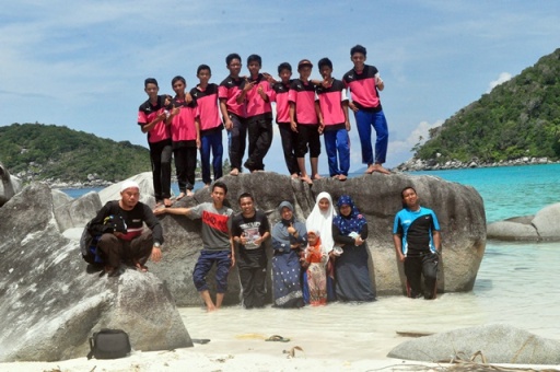 Semua anak kelas 9 dan dewan guru sangat antusias menyambut rencana kunjungan ini. Tepatnya, pukul 08.00 rombongan berangkat dari Tarempa menuju Pulau penjalin dengan sebuah pompong kecil bermuatan maksimal 30 orang.Walaupun, cuaca dan udara pagi hari itu lumayan terik, namun tidak memadamkan semangat anak kelas 9 dan dewan guru untuk samapi ke Pulau Penjalin. Setelah mengarungi lautan selama 3 jam, akhirnya pukul 11 an kita sampai. Dan ternyata tidak mengecewakan. Mari kita lihat fotonya bersama-sama....